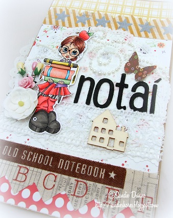 To embellish I added some flowers, pins, a punched butterfly, wooden 'school' and a pearl swirl. I also added some canvas borders from Pink Paislee's Old School range. They worked really well with the gorgeous papers.