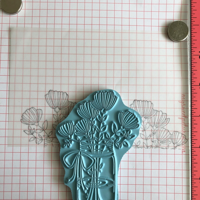 Ink just the flowers on the Mason Jar of Flowers stamp and stamp the flowers across the bottom of a 6" x 4" piece of vellum