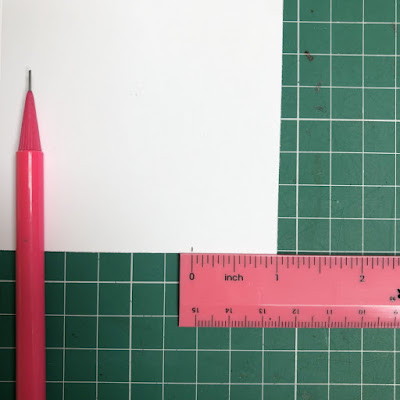 Cut from the score lines diagonally to the 1.5" pencil mark, and then from the 1.5" mark diagonally down to the 1" mark on the bottom. Repeat on both ends of the card base.