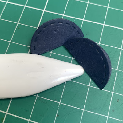 Stamp the small character stamp from the Cowboy Squidgy rubber stamp set. Colour, then cut out using a 2.5" stitched circle die. Leaving the die in place, ink the background with Tumbled Glass distress oxide ink.